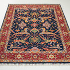 Şahzade Hand Knotted Navy Blue Ushak Patterned Wool Rug
