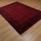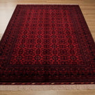 Afghan Pattern Hand-Knotted Burgundy Wool Bilicik Rug