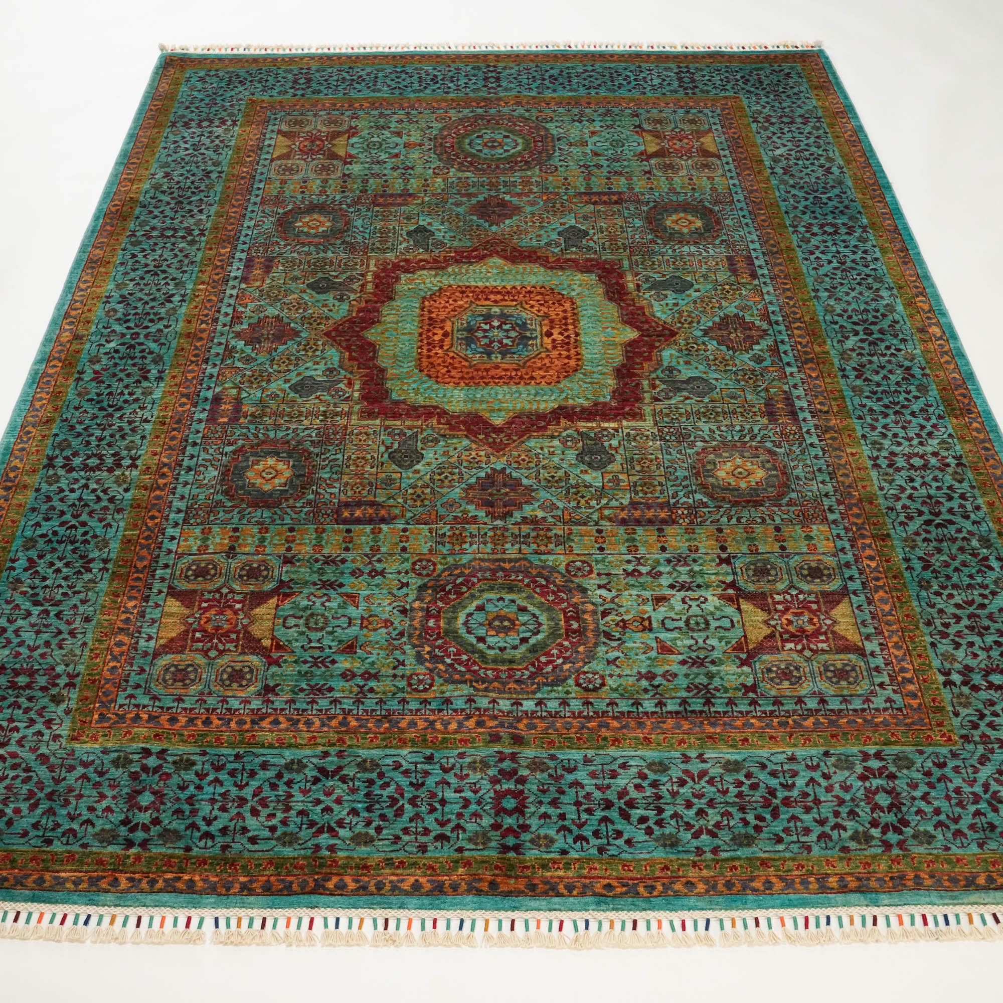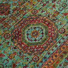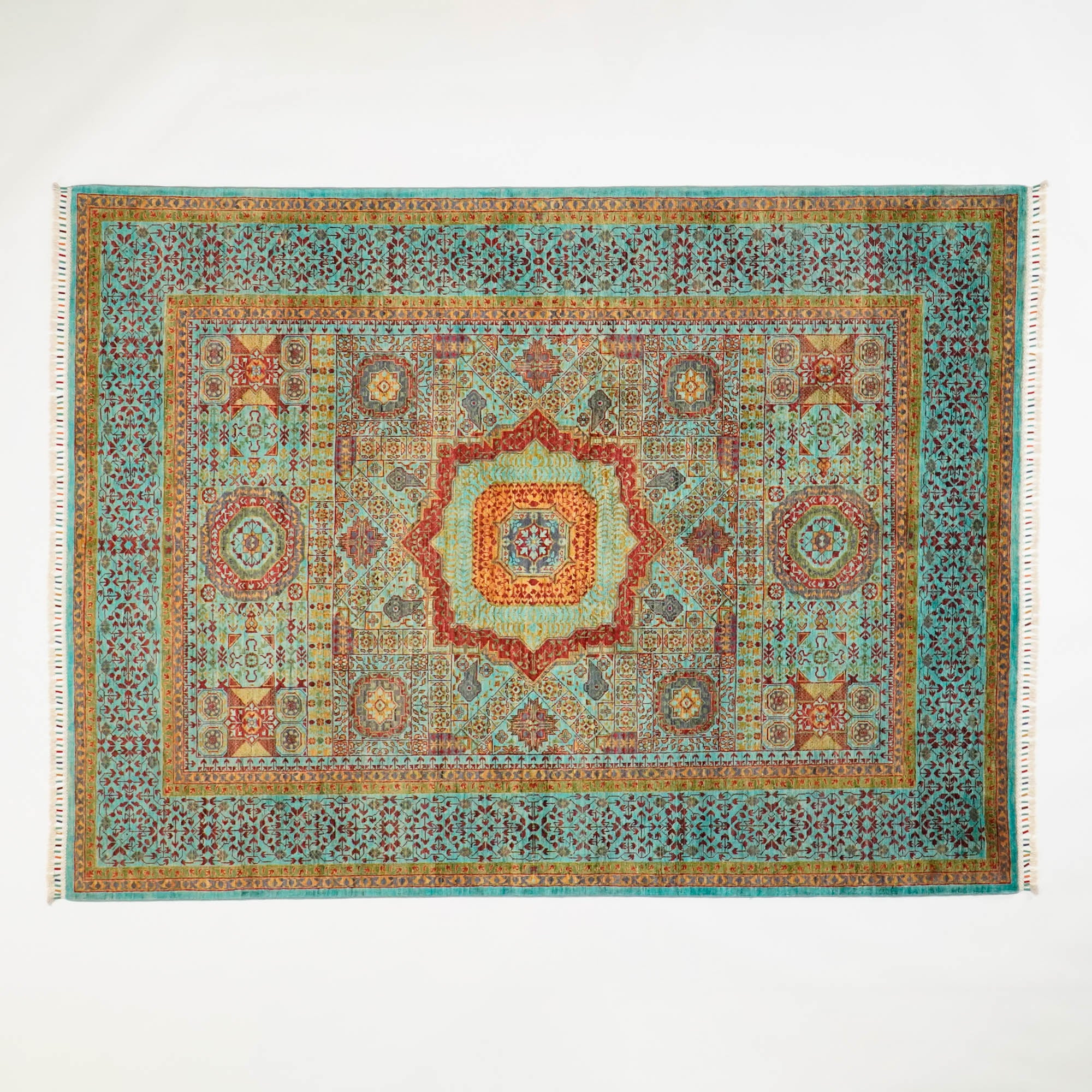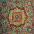 Mihman Hand Knotted Green Mamluk Pattern Wool Rug